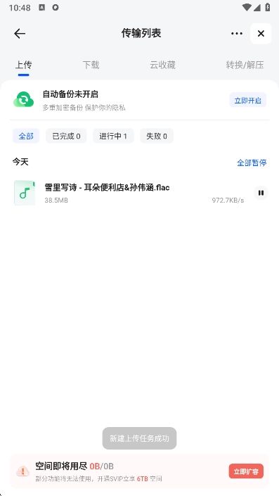 2. 在音乐云盘界面,点击【上传音乐】按钮