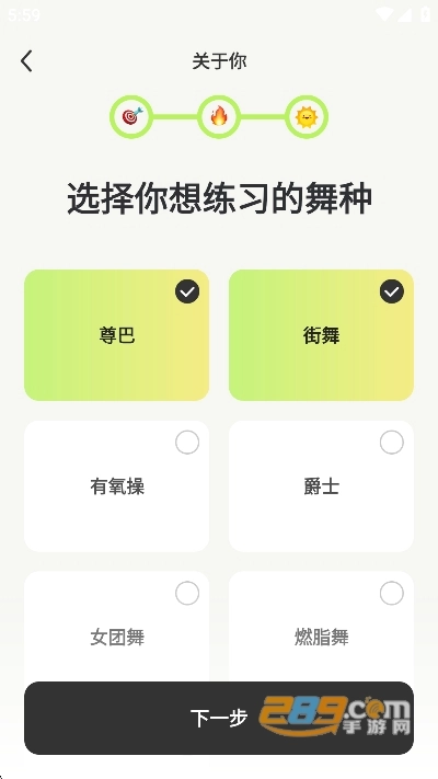 打开,用户们先设置自己的舞蹈目标
