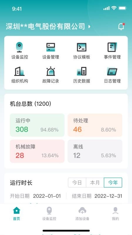 精准统计并展示设备运行数据,使用户随时随地都能在此获取精准且全面的设备数据。