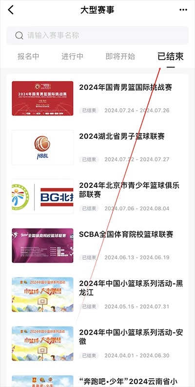 2、点击已结束的赛事,挑选自己想看的赛事并进入。