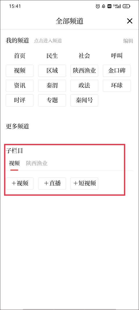 1、同样还是在【秦闻】界面,点击上方的“+”进入全部频道界面;