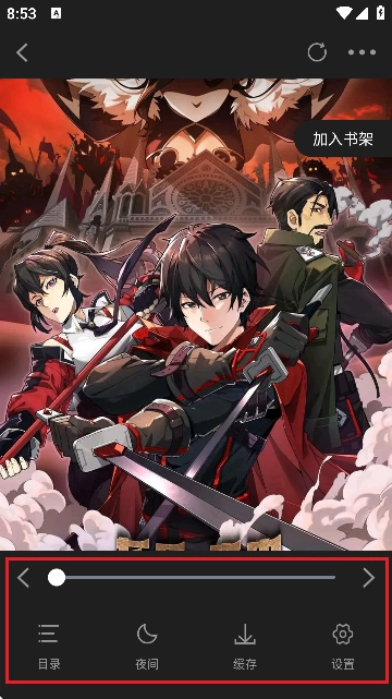 5、点击“开始阅读”,即可进入正文界面,如下图所示。在功能面板中,可进行查看目录、日夜间切换、缓存以及设置阅读界面效果等操作。