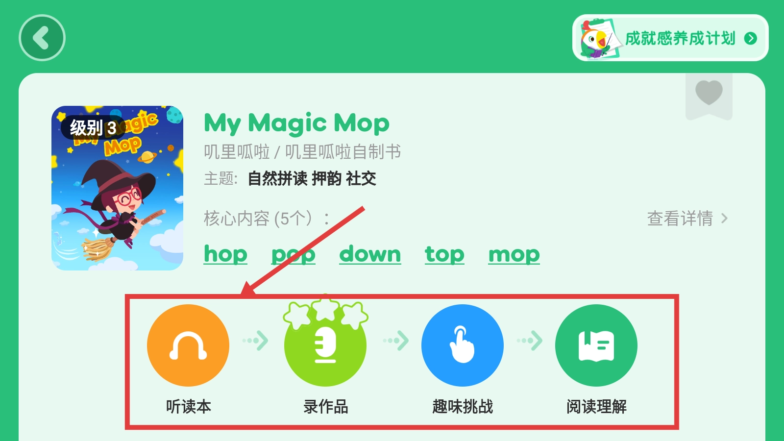 2、规划智能科学:精准定位孩子初始阅读水平,每周智能推送贴合实际的阅读规划,实时跟踪孩子的阅读表现,并依据艾宾浩斯遗忘曲线灵活调节阅读难度,助力孩子循序渐进,从易到难开启阅读之旅。