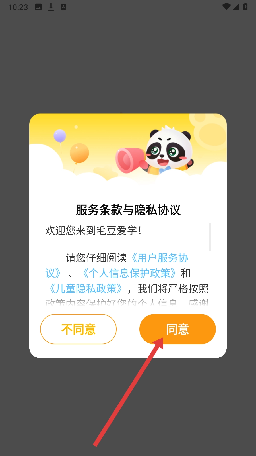 1、启动后阅读【服务条款与隐私协议】并点击同意进入。