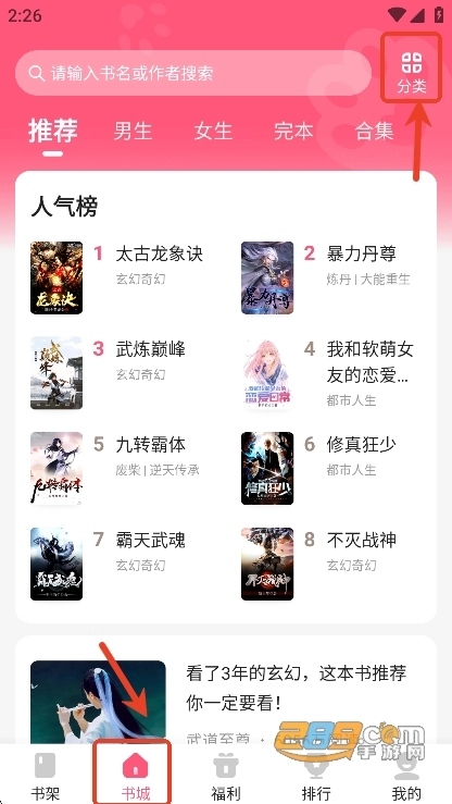 用户们可以点击书城右上角的分类图标,然后根据小说分类筛选出自己喜欢的小说