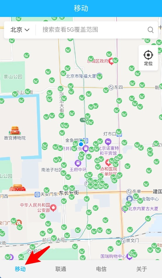 1、点击下方“移动”按钮,可查看中国移动5G覆盖范围地图。