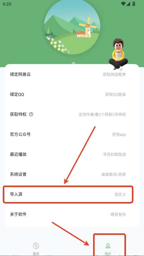 3.在我的界面点击导入源