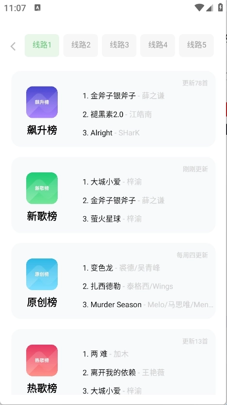 4.在排行榜,根据当前热度将音乐进行了排序