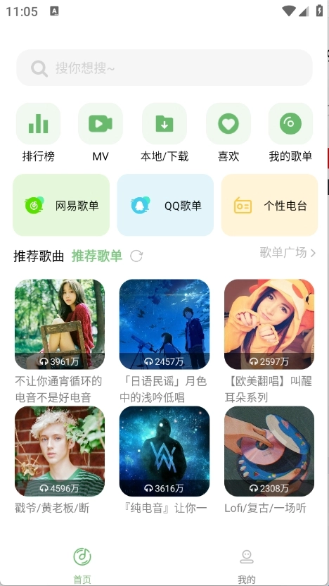 2.进入到首页后,可以看到很多的歌曲资源