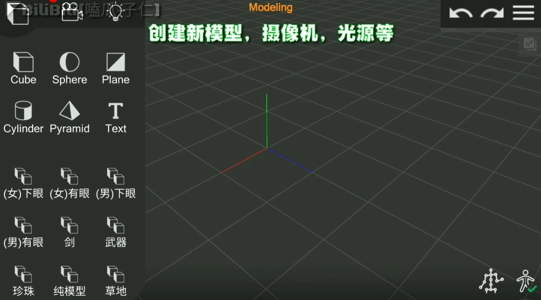 创建新模型、摄像机、光源等。