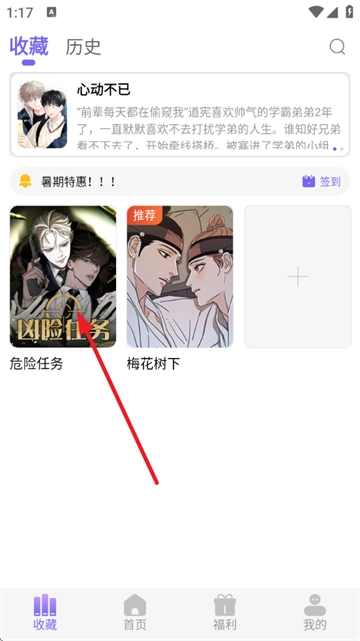 3、最后可以在收藏页面查找自己收藏的漫画了。