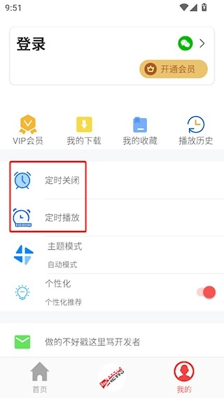 3、进入我的界面能设置定时关闭和定时播放