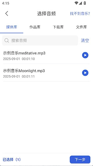 2、选择音频,点击下一步
