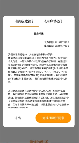2. 点击‘完成阅读并同意’,即可进入主页面;