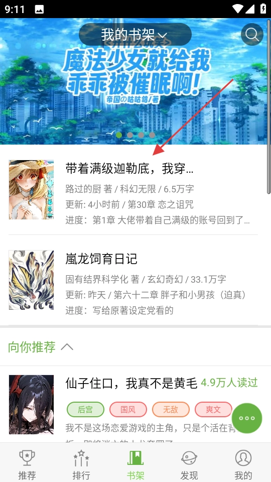 2、进入书架页面后,选择要阅读的书籍,比如带着满级迦勒底。