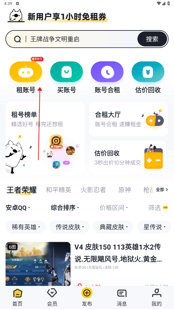 2. 具体租金价格:所有游戏账号的租金均清晰标注,让用户能迅速知晓租用所需费用。