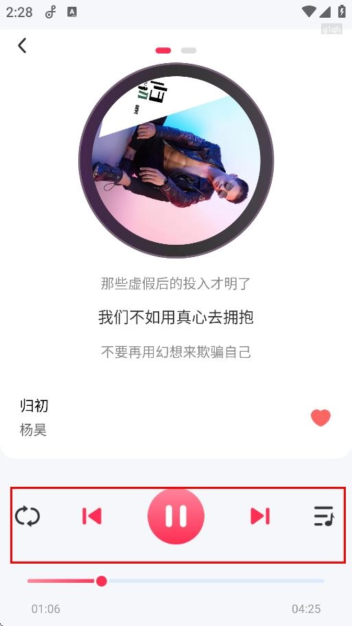 2、在播放页面,可通过底部控制栏进行播放、暂停、切歌等操作。
