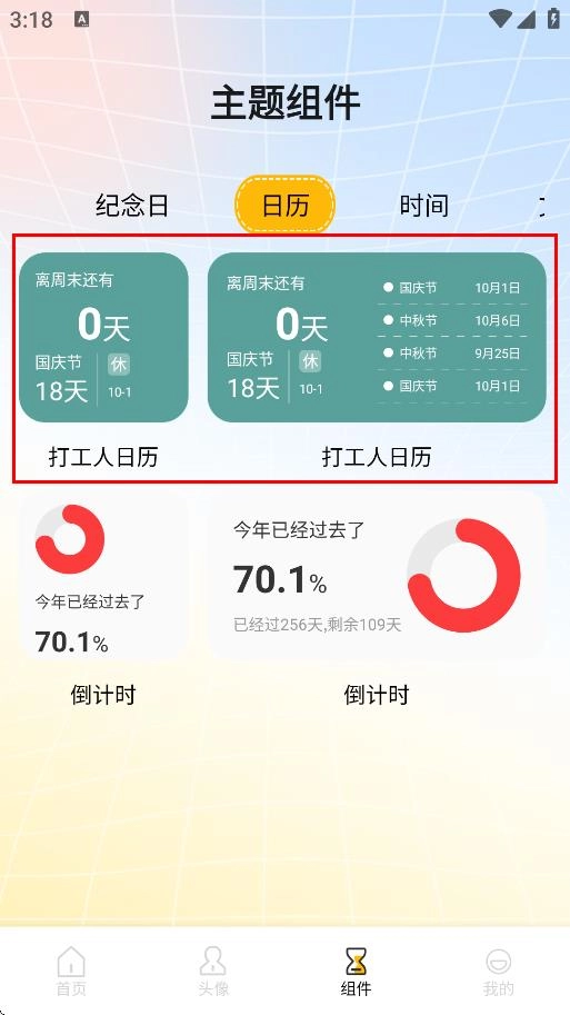 3、在日历类主题组件中,选择喜欢的组件,如打工人日历。