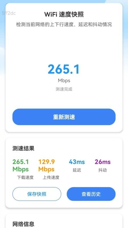 测试所得的网络速度能够一键保存,如此一来,无论何时,都可在应用及手机上查看,从而知晓网络状况。