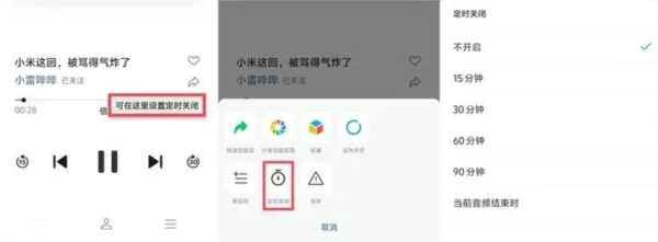 而定时关闭按钮从右侧收进分享菜单,现在得点击分享按钮,才能看到定时按钮。