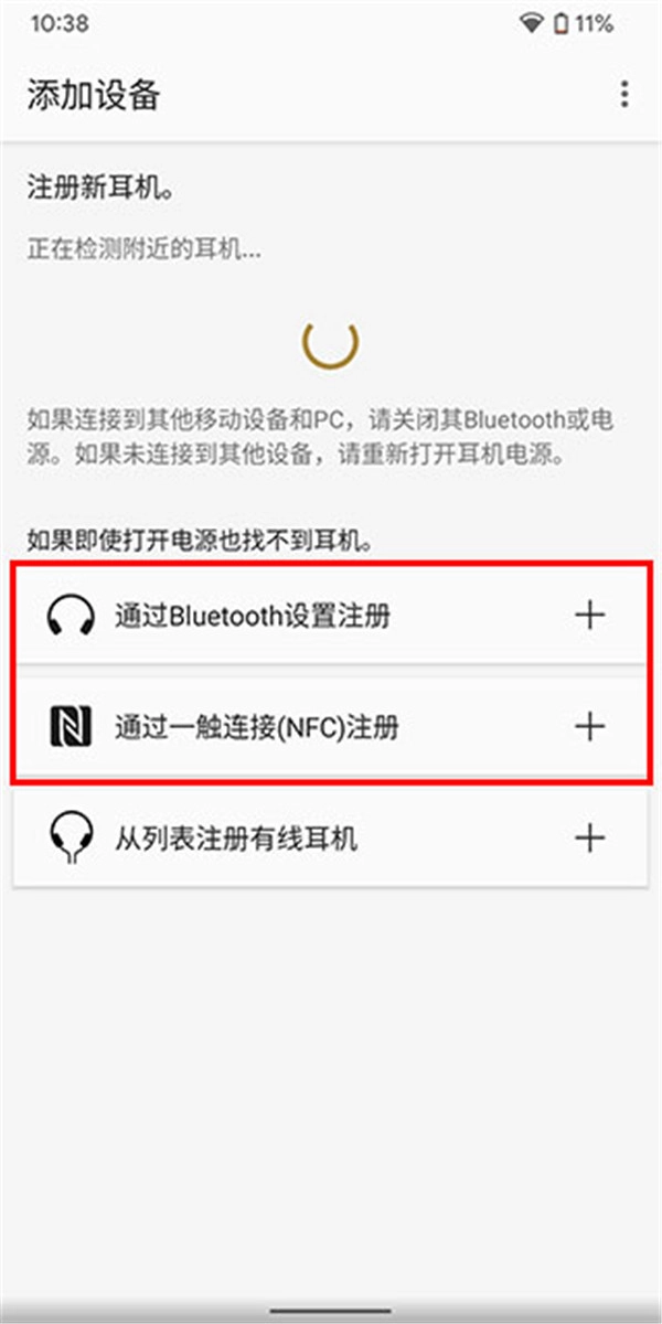 2、若软件未能检测到耳机,可选择经由蓝牙设置进行注册,或者通过一触连接手动连接耳机。