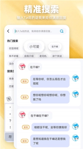 复制对方的词进行搜索,一键复制粘贴就可以轻松回复对方。