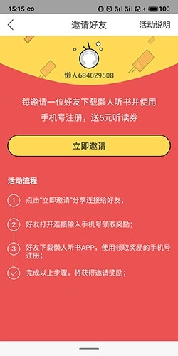 3、也可以选择邀请好友,每邀请一位好友就可以获得5元听读劵。