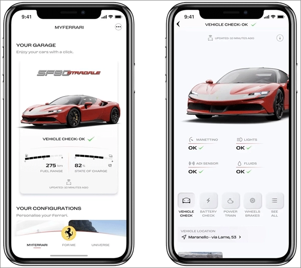 不仅如此,您还能够随时查阅汽车的各项关键信息。同时,这些数据会与您的经销商进行共享,方便他们安排各类必要工作,以尽可能简便、迅速的方式规划您的汽车养护。简而言之,若您拥有法拉利,那就即刻注册,领取您的凭证,准备以主角之姿,畅享独特且沉浸式的体验!