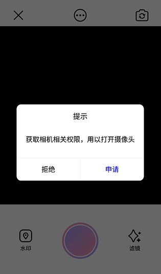 1、进入应用后,无需登录就能选择工具使用。比如,用户选择水印相机,便可进行授权拍照操作。