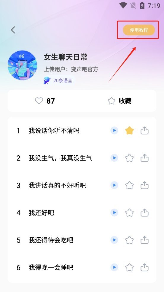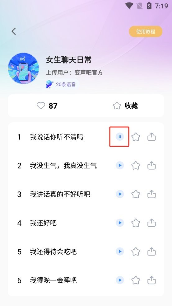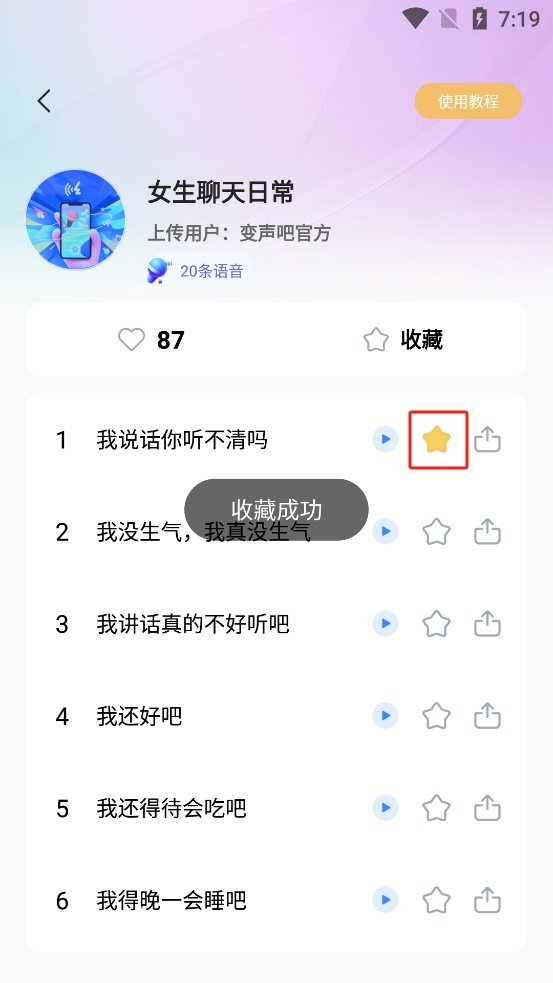 4、若碰到经常要用的语音,可通过收藏功能保存起来,这样随时都能更快捷地找到语音包并发送。