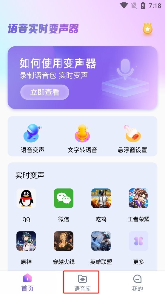 1、进入软件后将会看到各种变声器功能使用,我们选择语音库;