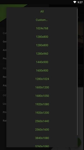 2、点击软件左上角“三”图标,找到resolution,选择壁纸的分辨率;