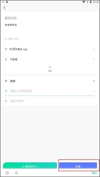 3、填写完事项信息,点击左下角的“邀请协作人”,会进入邀请协作人的流程。