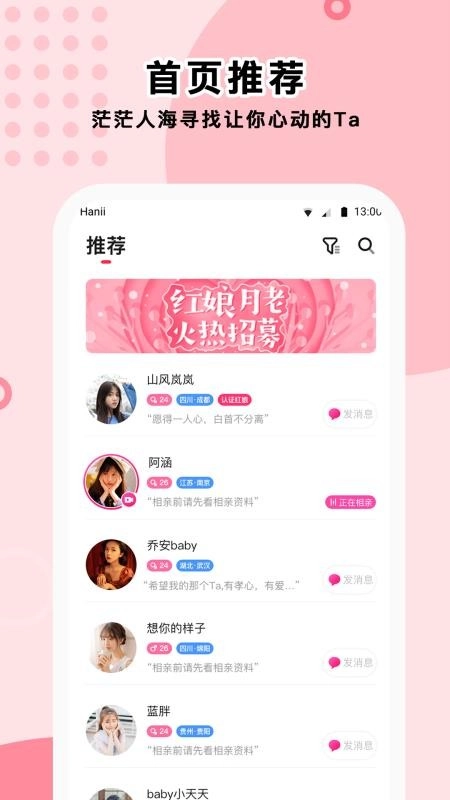 汇聚全国各地单身贵族,可以寻找同城附近的人;