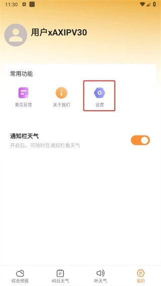 2、接着在我的页面上,能够看到存在意见反馈、关于我们以及设置功能,在此处点击【设置】按钮。