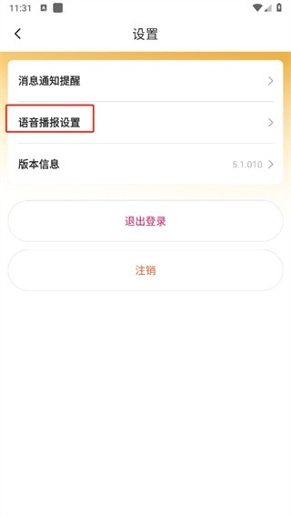 3、接着来到设置的页面有消息通知提醒、语音播报设置、版本信息,我们需要点击【语音播报设置】;