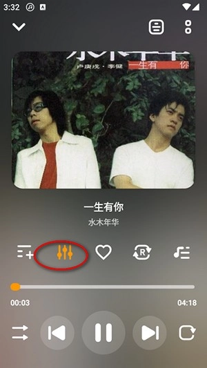 3、随后点击进入播放页面,在这里能够对播放模式进行设置,点击图中所示按钮,还能对均衡器进行设置。