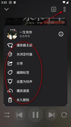 2、然后选择要播放的音乐,点右侧的按钮可呼出菜单。