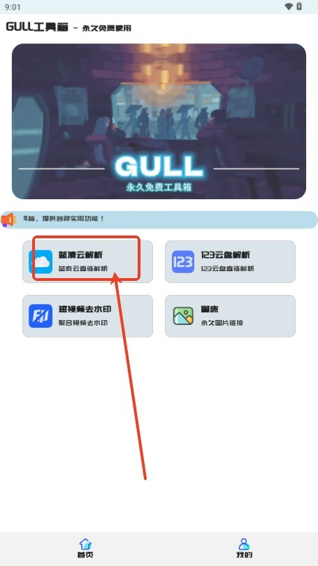 1、首先在的首页点击这个蓝奏云解析功能;