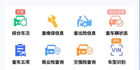 通过车架号、行驶证、车牌号等多种渠道,可进行车辆维保记录查询、车辆出险记录查询以及车辆出厂信息查询,帮您有效避开事故车、泡水车和调表车。