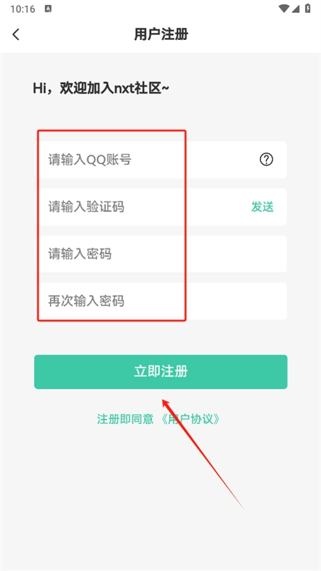 4、填入QQ号、密码等相关信息,接着点击“立即注册”便可完成操作。