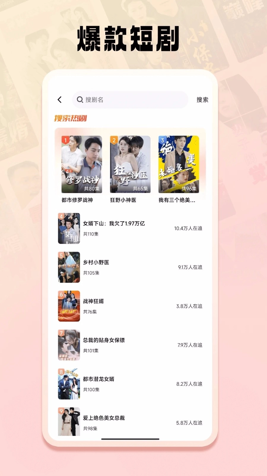 免费短剧之家,一款专为安卓用户打造的爆款免费短剧观看平台。软件内海量实用功能等您探索,支持关键词搜索,实现快捷查询,使用便捷,让您随时随地都能轻松享受看剧乐趣。若您对这款软件感兴趣,不妨点击一试!