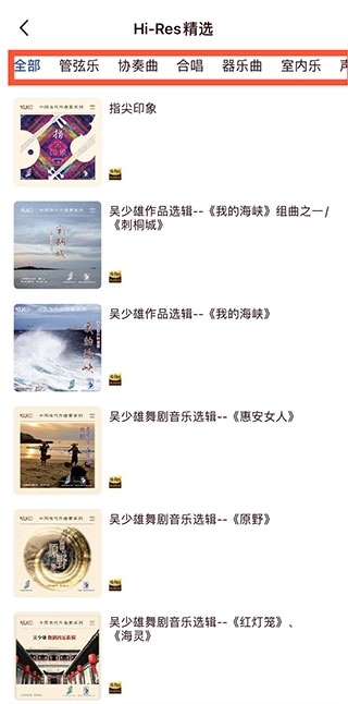 4、在Hi-Res界面,点击“更多”选项,这时就能看到按不同分类展示的古典音乐。接着,点击你想听的专辑,随即会进入专辑详情页面,在该页面中可以收听整张专辑。