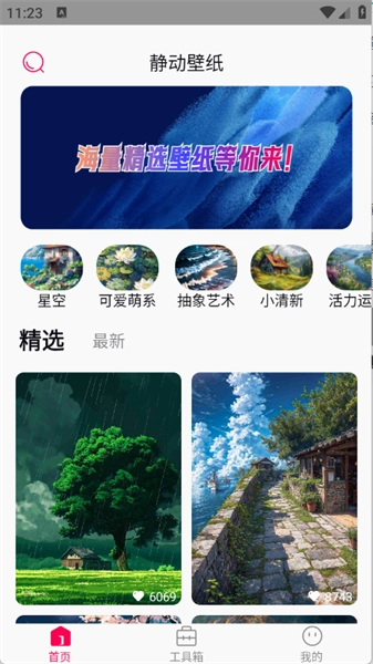 2. 首页设有各类风格的壁纸,涵盖星空、萌系、小清新等,用户能够依据自身喜好挑选适宜的背景。