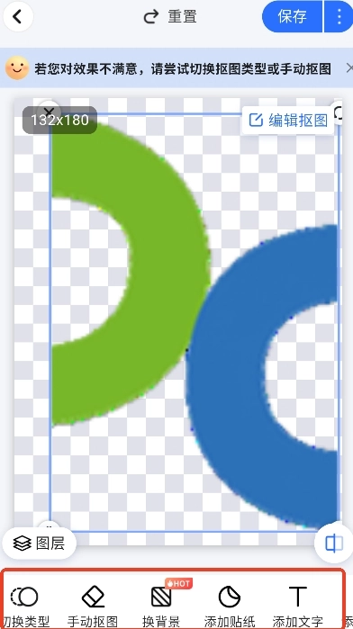 4、即刻为大家提供精准抠图服务,在下方功能栏,还能对抠图后的图片进行编辑。