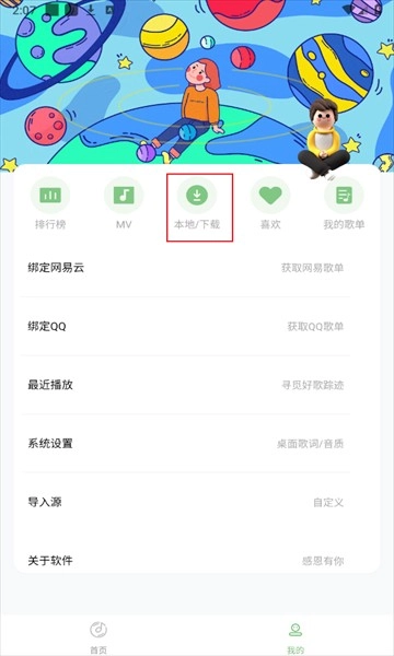 完成后可以点击我的,进入本地/查看自己的歌曲