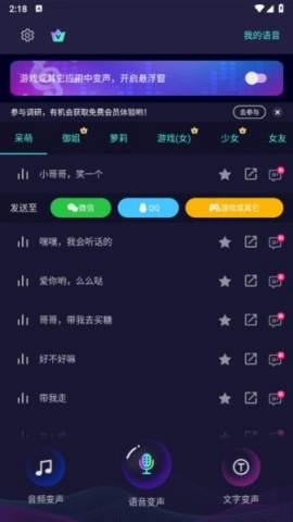 1. 软件提供丰富多样的变声效果,多种变音选项任您挑选,助您在语音聊天中随心选择,每次交流都能充满惊喜。