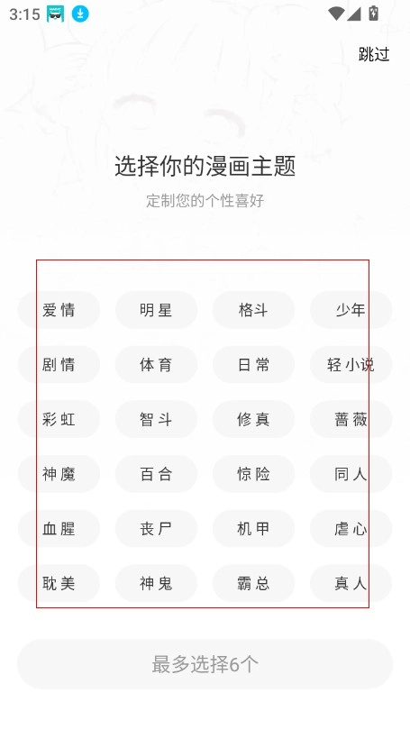 选择喜欢观看的题材类型,也可以直接点击跳过