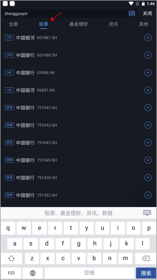 挑选股票时,从呈现的搜索结果里选定我们想要查找的那只股票。