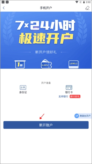 点击中间唯一的按钮“新开账户”。